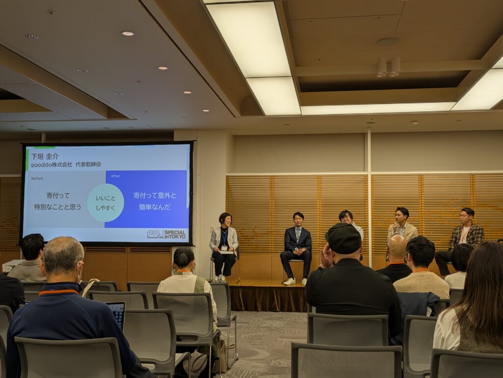 本イベントでは、弊社社長の下垣もセッション「新しいお金の流れを生み出すシステムチェンジャーたちの挑戦」への登壇と、寄付や社会的投資を促進する新たな仕組み・ビジネス・団体の創設につながるアイディアを競い合うピッチコンテストの審査員を務め、弊社メンバーも本イベントに参加してきました。