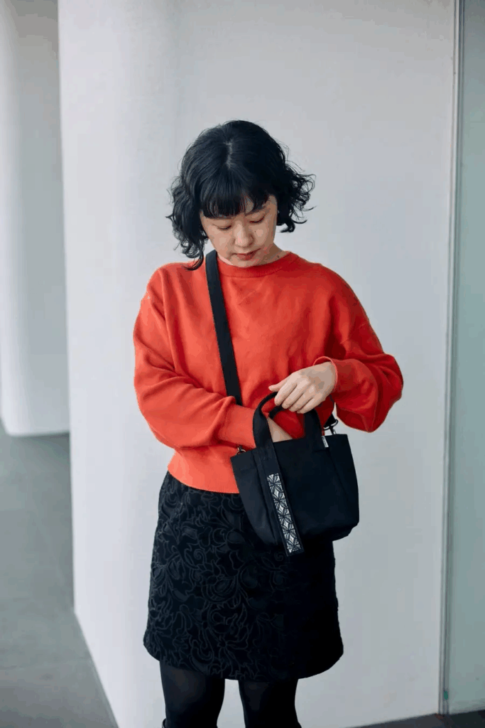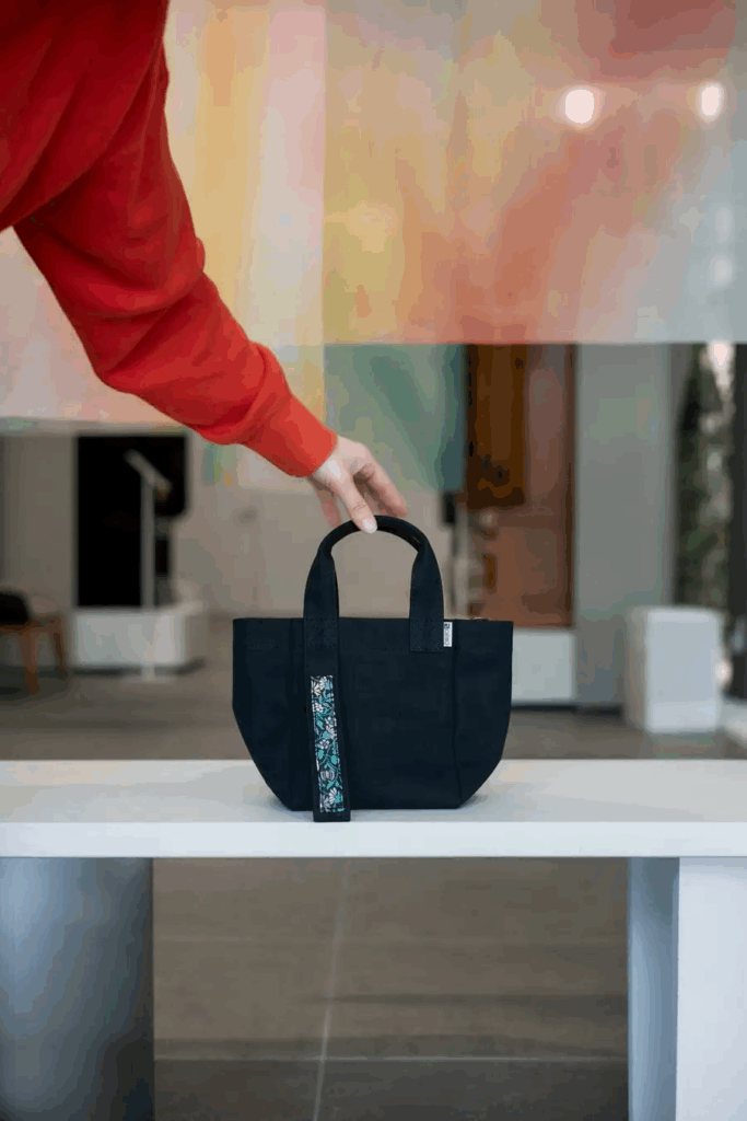 そんな中、博多織を現代の暮らしに再び取り入れるために生まれたのが「NABIKI」。このバッグは、耐久性に優れた福岡帆布をベースに、博多織の帯地ハギレを一点ずつ組み合わせて作られています。ハンドバッグとショルダーバッグの2WAY仕様で、和装にも洋装にもマッチするデザインが特徴です。さらに、博多織の「揺れ」や「余白」といった美しさを日常で楽しめるよう工夫されています。