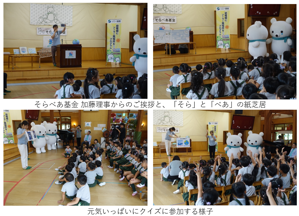 ソニー損保の「幼稚園にソーラー発電所を☆プログラム」によって寄付された資金を活用して、NPO法人そらべあ基金を通じて寄贈されています。